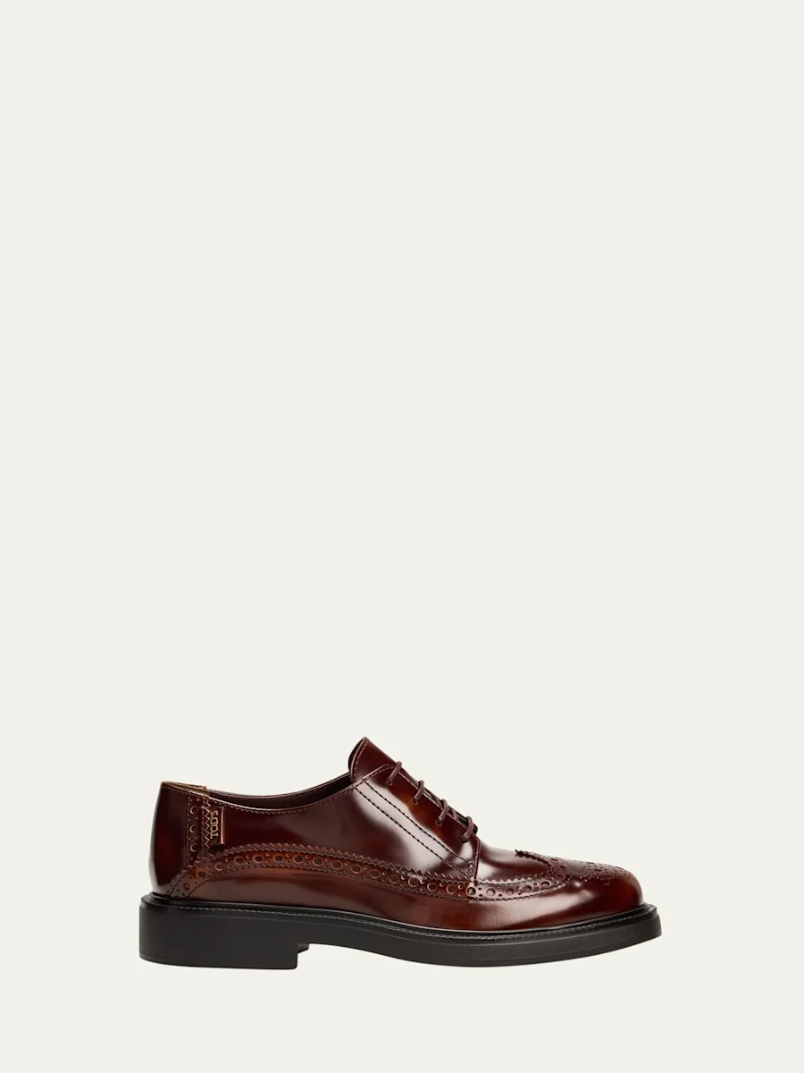 Tod's "Gomma" oxford loafers in calf leather with perforated detailing 0.75 in / 20 mm flat heel Round wing-tip toe Lace-up vamp Lining: Virgin wool Rubber outsole Made in Italy Online Inquiries: BGS21_X6LUA| Store Inquiries: #4806941