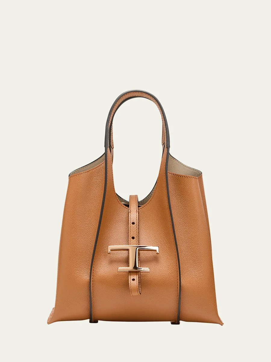 T TIMELESS SHOPPING BAG IN LEATHER MINI - BROWN
