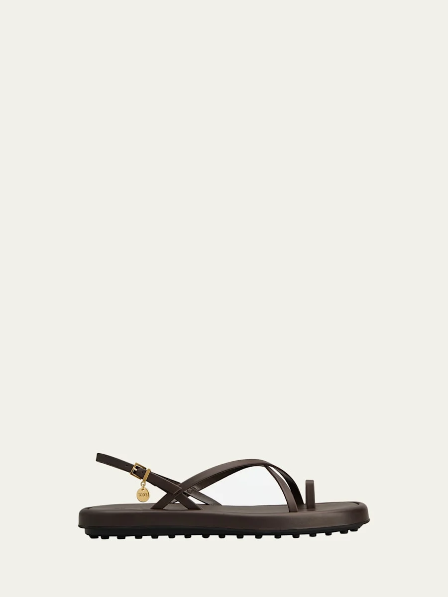 Tod's sandals in leather featuring a mini metal logo tag 0.25 in / 10 mm flat heel Leather lining Strappy leather vamp Adjustable ankle strap Pebbled rubber outsole Spot clean Made in Italy Online Inquiries: BGS21_X6TTA| Store Inquiries: #4964681