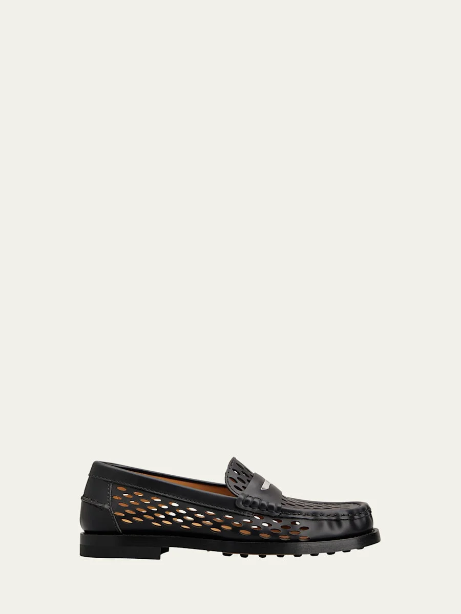 Perforated Leather Driver Penny Loafers