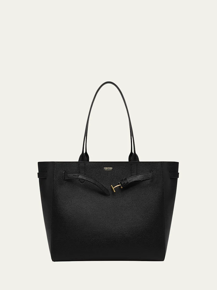 TOM FORD "Audrey" tote bag in grain leather and polyester Shoulder straps, 9.7" drop Open top with adjustable center T strap Interior, one zip pocket Lining: Polyester Approx. 12.2"H x 14.6"W x 7.7"D Item Weight (Lbs.): 1.6 Made in Italy Online Inquiries: BGS21_V68KB| Store Inquiries: #4804092