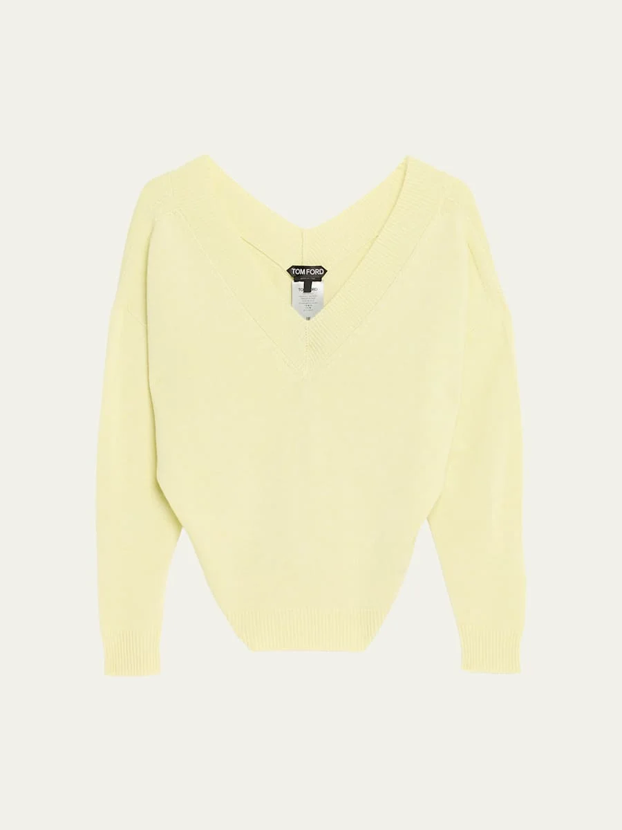 Crafted from soft cashmereblend knit, this sweater from TOM FORD features a wide V neckline that falls off the shoulder Offtheshoulder neckline Long sleeves Drop shoulders Loose fit Hip length Ribbed cuffs and hem Pullover style Wool/polyester/cashmere Made in Italy