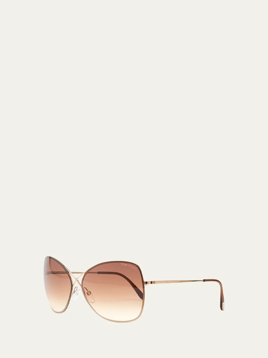 Shiny metal frames with gradient lenses. Signature Tom Ford crossover nose bridge. Logo text at left brow and sideways T logo adorns arms. 100% UVA/UVB protection. Made in Italy. Online Inquiries: BGS21_D2TLT| Store Inquiries: #280285