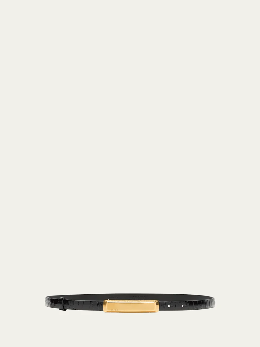 TOM FORD crocembossed belt in leather and brass Logo engraved buckle Adjustable fit Made in Italy