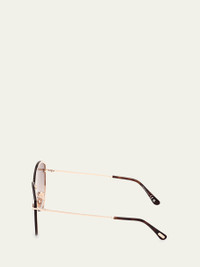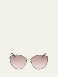 TOM FORD "Evangeline" cateye sunglasses in metal Lens/bridge/temple (in mm): 6314140 Gradient lenses; logo on corner Adjustable nose pads Signature T hinges Thin, tapered arms Capped earpieces Spot clean 100% UVA/UVB protection Made in Italy