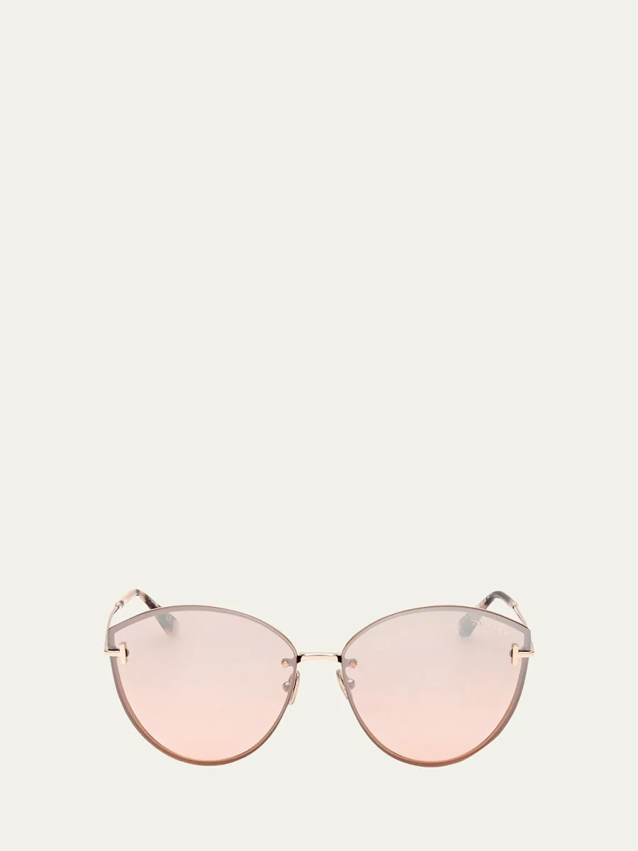 TOM FORD "Evangeline" cateye sunglasses in metal Lens/bridge/temple (in mm): 6314140 Gradient lenses; logo on corner Adjustable nose pads Signature T hinges Thin, tapered arms Capped earpieces Spot clean 100% UVA/UVB protection Made in Italy