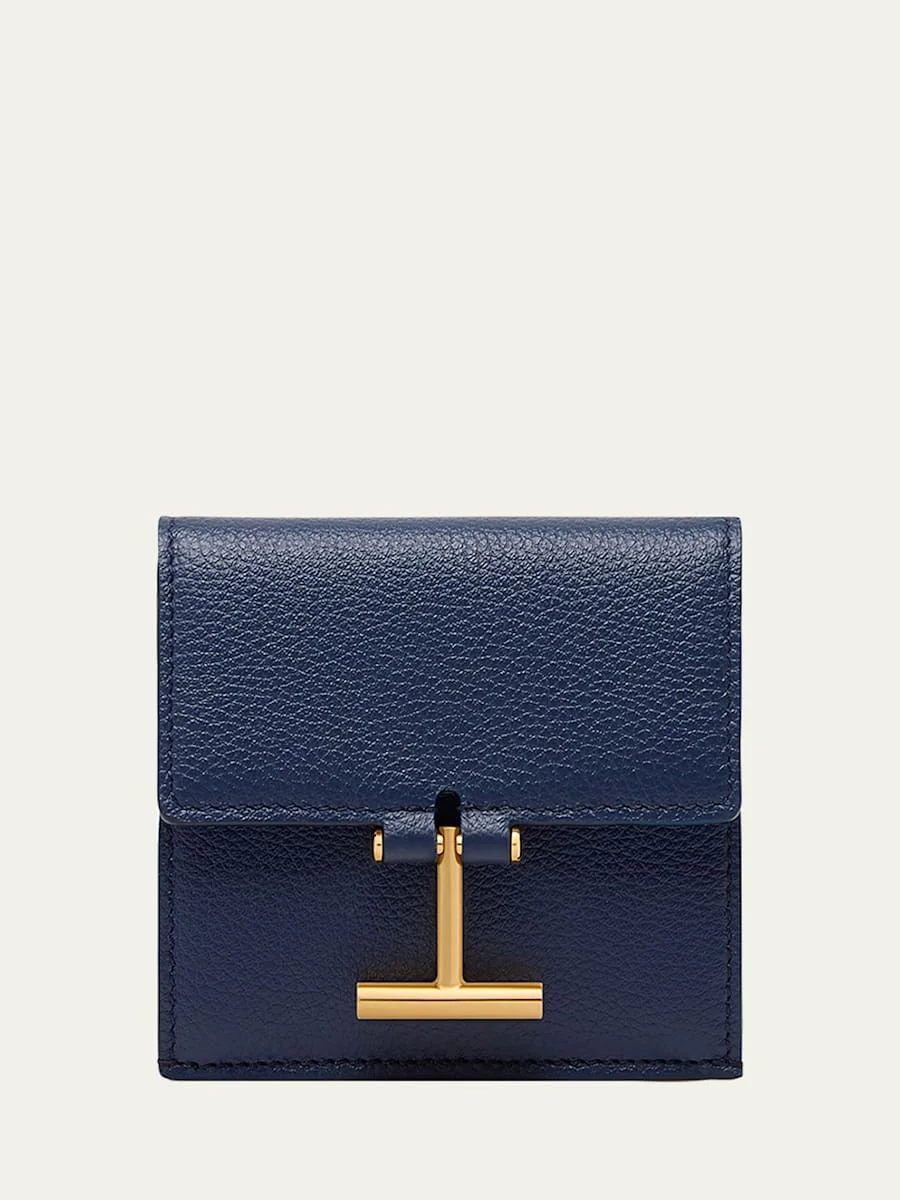 TOM FORD card holder in shiny snakeembossed leather Flap top with T bar snap closure Exterior, four card slots Approx. 3.7"H x 3.7"W Made in Italy