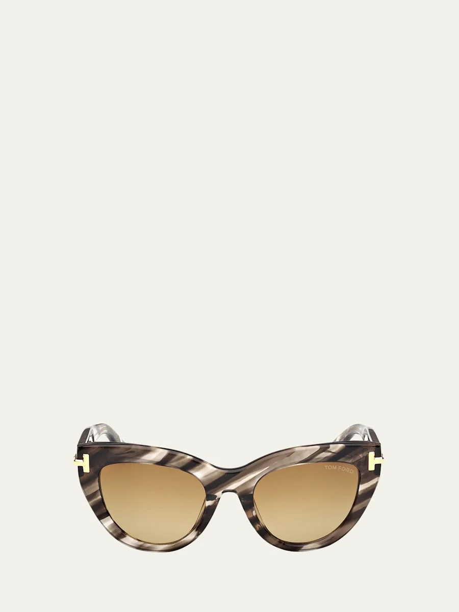 TOM FORD cat-eye acetate sunglasses from the Icon collection Eye/bridge/temple (in mm): 52-21-140 Gradient lenses Saddle nose bridge Thin, tapered arms Signature T hinges Acetate 100% UVA/UVB protection Made in Italy Proposition 65 warning for California residents Online Inquiries: BGS21_D5JP2| Store Inquiries: #4983196