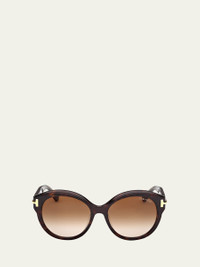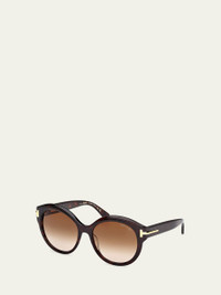 TOM FORD round acetate sunglasses from the Icon collection Eye/bridge/temple (in mm): 57-18-140 Solid lenses Saddle nose bridge Thin, tapered arms Signature T hinges Acetate 100% UVA/UVB protection Made in Italy Proposition 65 warning for California residents Online Inquiries: BGS21_D562L| Store Inquiries: #4983195