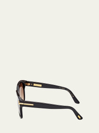 The TOM FORD EYEWEAR ICON COLLECTION is the maximum expression of luxury. Inspired by personalities with charisma and presence, the collection shines the spotlight on unparalleled workmanship that elevates and enhances each element. Fine processing highlights these styles. Handcrafted Havana colorations and transparent acetate on the inner side of the temples with a new protective layer distinguish the tints of ICON sunglasses. The fine acetate frames are embellished with gold-tone metal inserts and engravings that create a surprisingly harmonious aesthetic. Seductive thicknesses, volumes, and dimensions are characterized by 3D new logos with a shape that echoes the diamond’s baguette and becomes the new imprint of the brand. Each eye-catching frame with new high-quality ZEISS lenses transmits the strength, value, and personality of the brand through superb comfort, irresistible allure, and optimal vision. Designed to identify and inspire people who seek the true essence of elite style, the collection embodies the legendary quality and craftsmanship of TOM FORD EYEWEAR. TOM FORD "Icon" square sunglasses in acetate Lens/bridge/temple (in mm): 58-18-140 Gradient lenses; logo on corner Saddle nose bridge Signature T hinges Thin, tapered arms 100% UVA/UVB protection Made in Italy Proposition 65 warning for California residents Online Inquiries: BGS21_D53GD| Store Inquiries: #4934092