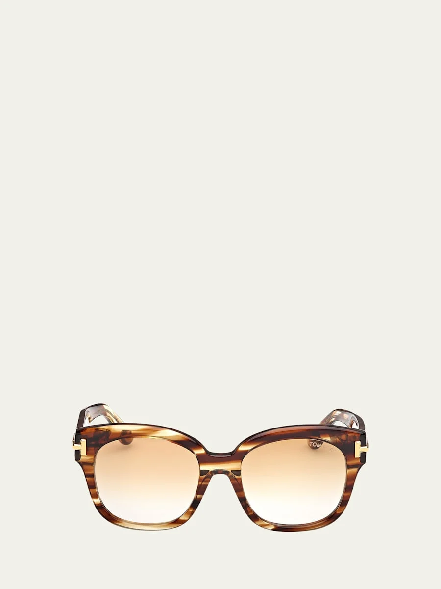 TOM FORD "Icon" square sunglasses in acetate Eye/bridge/temple (in mm): 55-20-140 Gradient lenses; logo on corner Signature T hinges Wide, tapered arms Spot clean 100% UVA/UVB protection Made in Italy Proposition 65 warning for California residents Online Inquiries: BGS21_D5352| Store Inquiries: #4926034