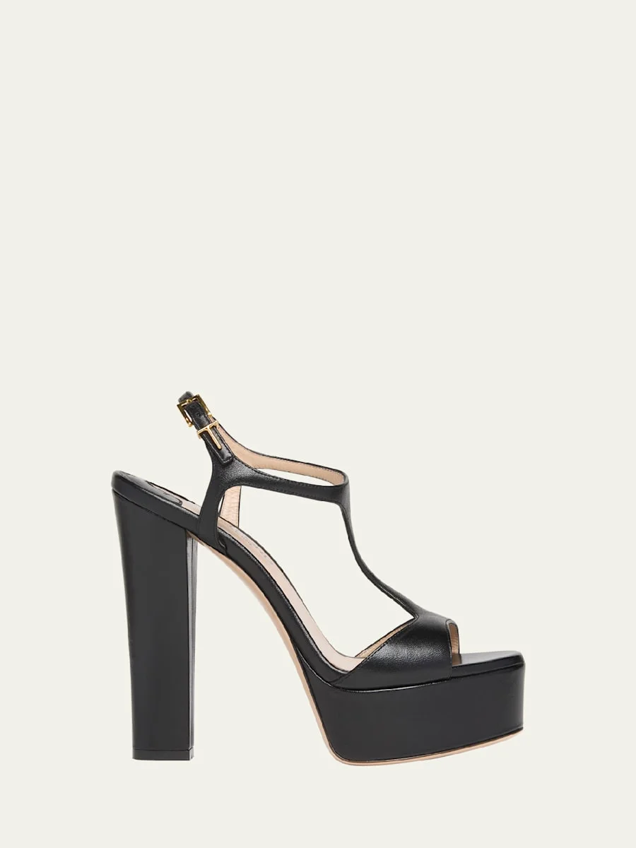 Leather T-Strap Platform Sandals