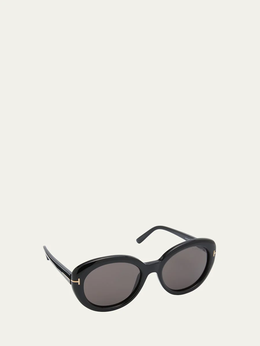 TOM FORD "Lily" cat-eye sunglasses in acetate Lens/bridge/temple (in mm): 55 -19 -140 Solid lenses; logo on corner Saddle nose bridge Contrasting signature T hinges Thin, tapered arms Logo embellishment on earpieces 100% UVA/UVB protection Made in Italy Proposition 65 warning for California residents Online Inquiries: BGS21_D4G6Q| Store Inquiries: #4425257