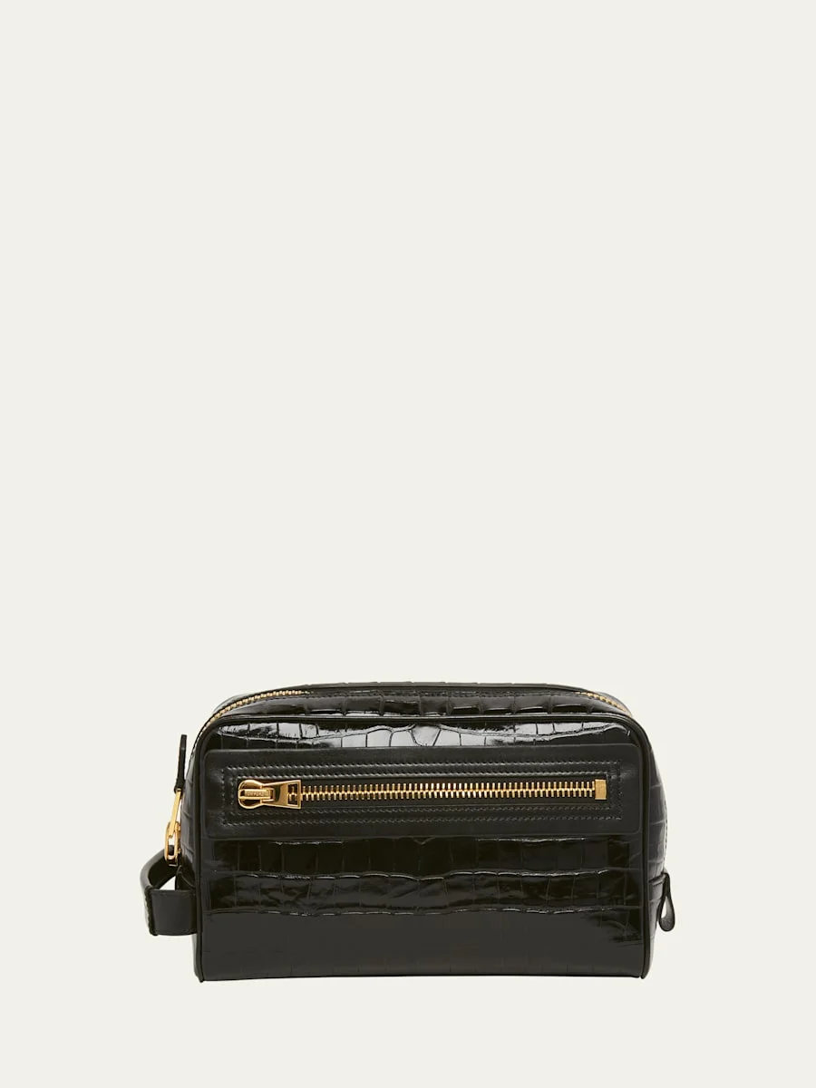 Men's Crocodile-Print Leather Toiletry Case