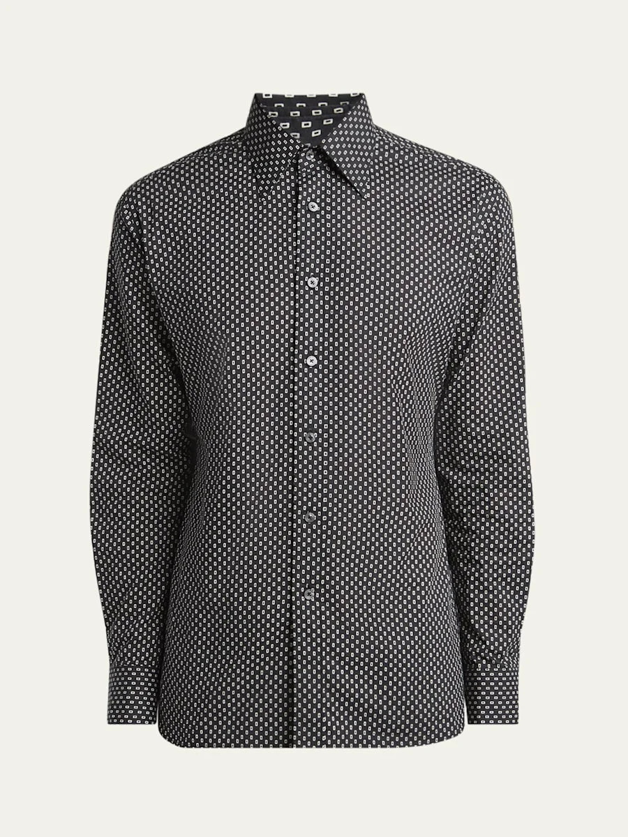 The cotton voile weave creates a lightweight feel for this TOM FORD geometric shirt. Point collar Button placket Long sleeves Single-button cuffs Shirttail hem Slim fit Cotton Made in Italy Proposition 65 warning for California residents Online Inquiries: BGS21_NDL70| Store Inquiries: #5044039