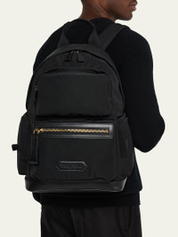TOM FORD nylon backpack featuring embossed leather lozenge logo patch at front Gold-tone hardware Double zip closure Rolled top carry handle Two front zip pockets; two side zip pockets Internal snap laptop pocket Two adjustable padded shoulder straps Leather bottom Recycled polyester Made in Italy Online Inquiries: BGS21_N9N32| Store Inquiries: #4352870