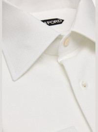 TOM FORD formal shirt in pique cotton poplin boasting a rich dimension Point collar Genuine mother-of-pearl buttons Long sleeves French cuffs Shirttail hem Cotton Professional cleaning recommended Made in Italy Online Inquiries: BGS21_NDFWE| Store Inquiries: #5036070