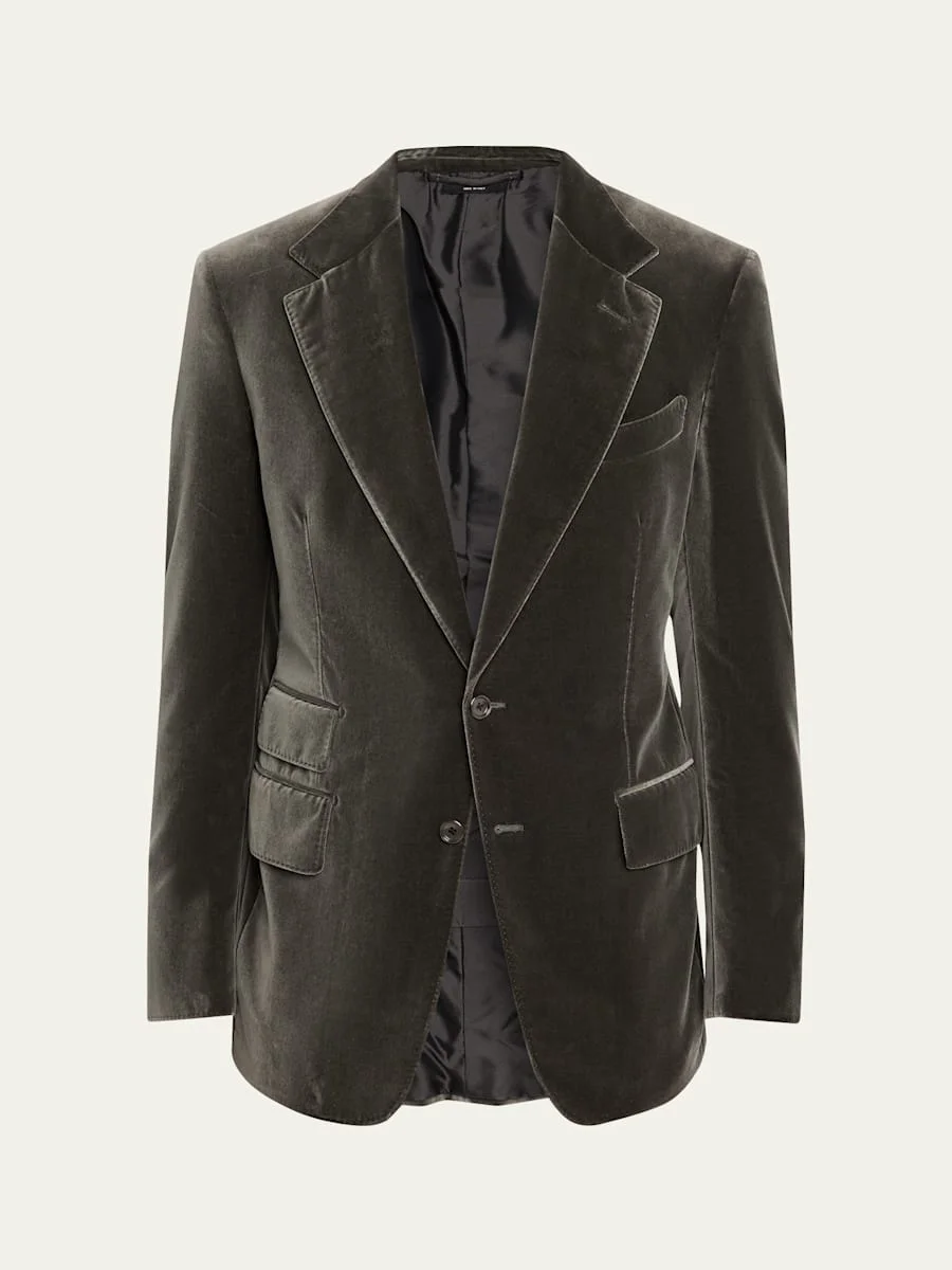 TOM FORD "Shelton" jacket in compact cotton velvet Notch lapels Two-button front Chest welt pocket Side flap pockets; inner ticket pocket Unfinished cuffs Double-vented back Cotton Professional cleaning recommended Made in Italy Proposition 65 warning for California residents Online Inquiries: BGS21_NDMYH| Store Inquiries: #5051982