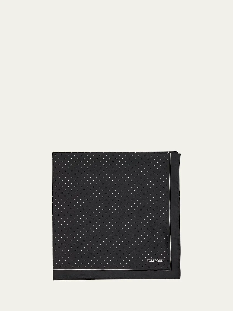 TOM FORD pocket square in a micro dot pattern Approx. 15.7"L x 15.7"W May be styled multiple ways Logo lettering at corner Silk Professional cleaning recommended Made in Italy
