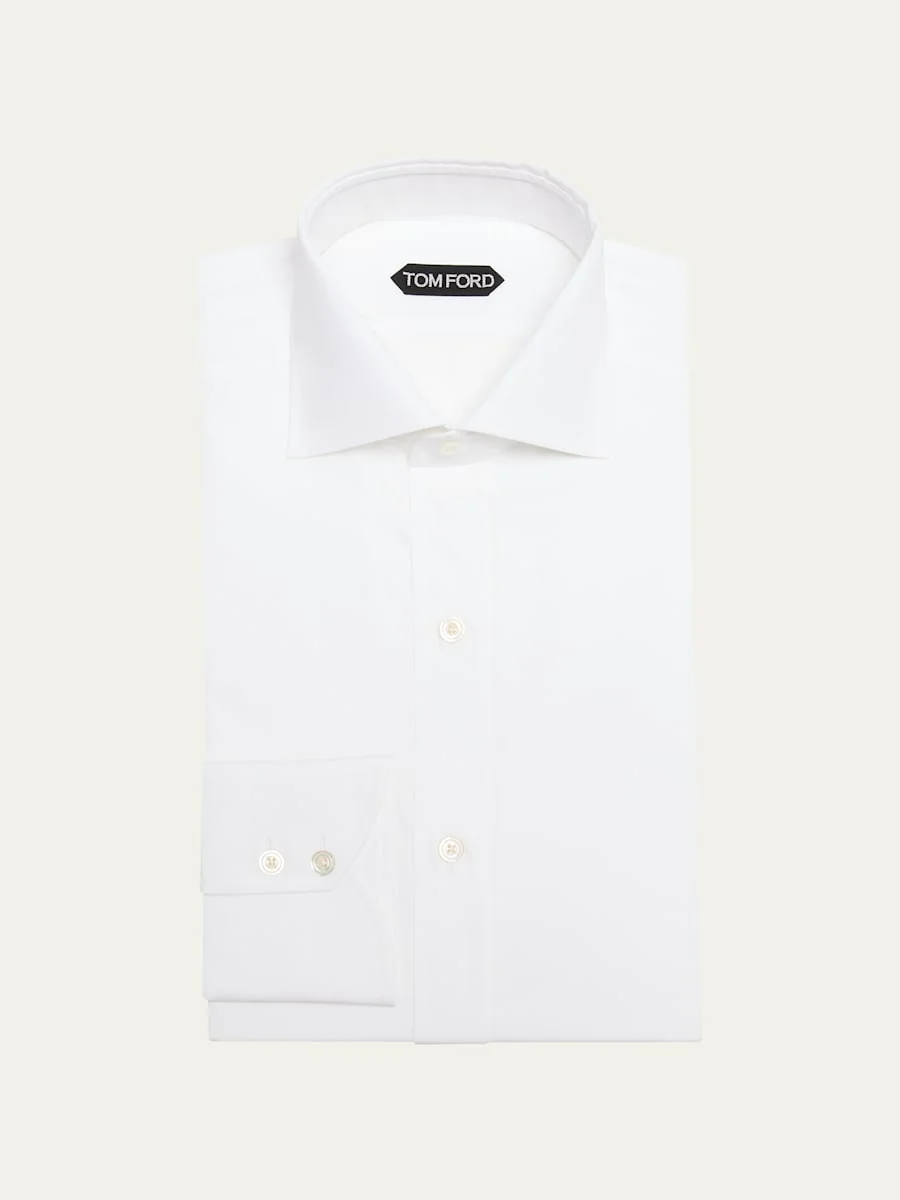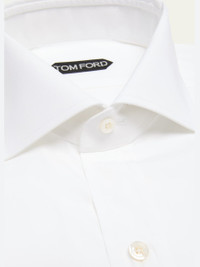 TOM FORD solid dress shirt Point collar; button placket Genuine mother-of-pearl buttons Long sleeves Double-button cuffs Shirttail hem Slim fit Cotton Made in Italy Model is 6'1"/185cm. Online Inquiries: BGS21_NBBM7| Store Inquiries: #4621036