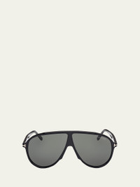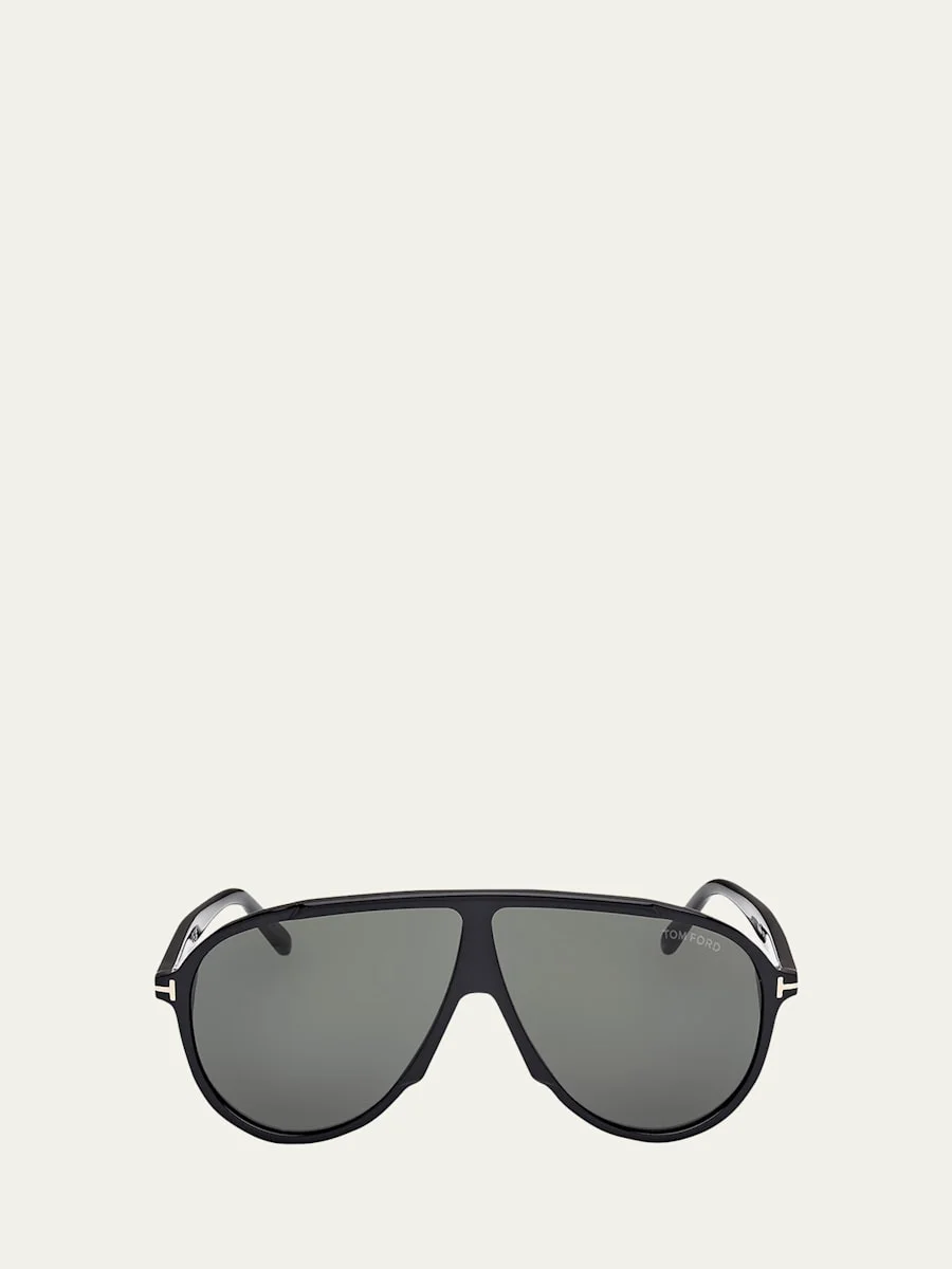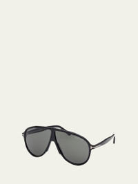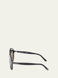 TOM FORD "Vladimir" aviator sunglasses in acetate Lens/bridge/temple (in mm): 65-5-140 Solid-color lenses Logo on the left lens Saddle nose bridge Metal T-temple decoration Thin arms Branded temple tips Acetate Spot clean 100% UVA/UVB protection Made in Italy Proposition 65 warning for California residents Online Inquiries: BGS21_ND3UD| Store Inquiries: #5020779