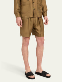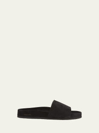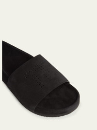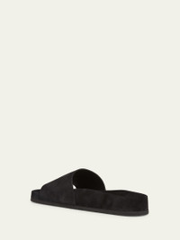 TOM FORD "Wicklow" slide sandals in calf suede Single band with perforated "TF" design Rubber outsole Lining: Leather Made in Italy Online Inquiries: BGS21_NCK1T| Store Inquiries: #4898590