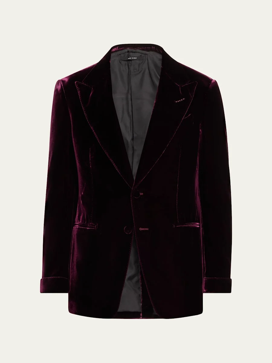 TOM FORD cocktail jacket in solid velvet Peak lapels; two-button front Welt pockets Unfinished sleeves Single back vent Wool/silk Made in Italy Online Inquiries: BGS21_NDRXZ| Store Inquiries: #4566891