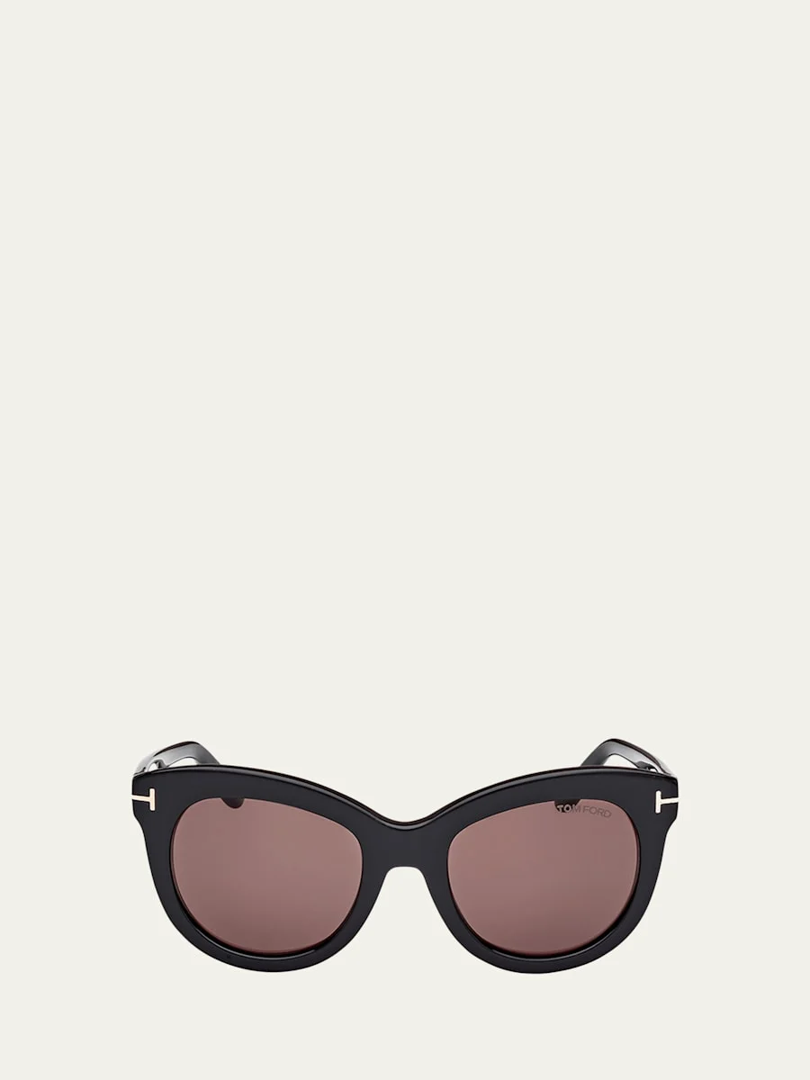 TOM FORD "Odette" round sunglasses in acetate Lens/bridge/temple (in mm): 53-21-140 Solid-color lenses T logo on hinge Thin, tapered arms Logo on earpieces 100% UVA/UVB protection Made in Italy Proposition 65 warning for California residents Online Inquiries: BGS21_D53GP| Store Inquiries: #4934102