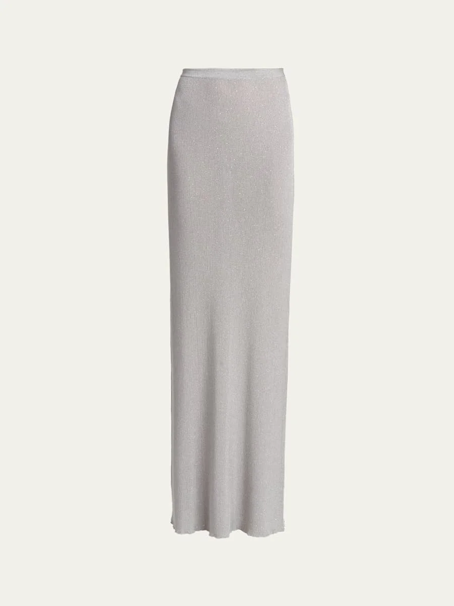 MICRO SEQUINS EMBELLISHED RIB LONG SKIRT