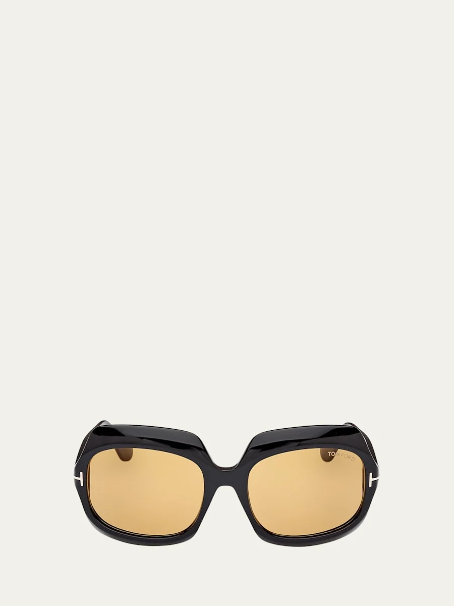 TOM FORD "Ren" beveled round sunglasses in acetate Solid lenses; logo on corner Saddle nose bridge Signature T hinges Thin, tapered arms Spot clean 100% UVA/UVB protection Made in Italy Proposition 65 warning for California residents Online Inquiries: BGS21_D4YJK| Store Inquiries: #4830010