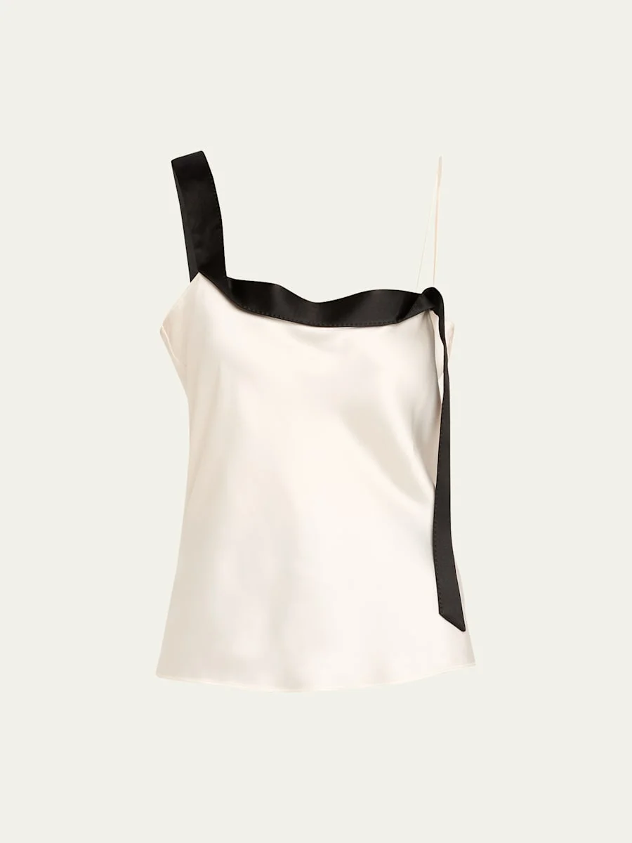 SILK SATIN CAMISOLE TOP WITH TUXEDO BAND