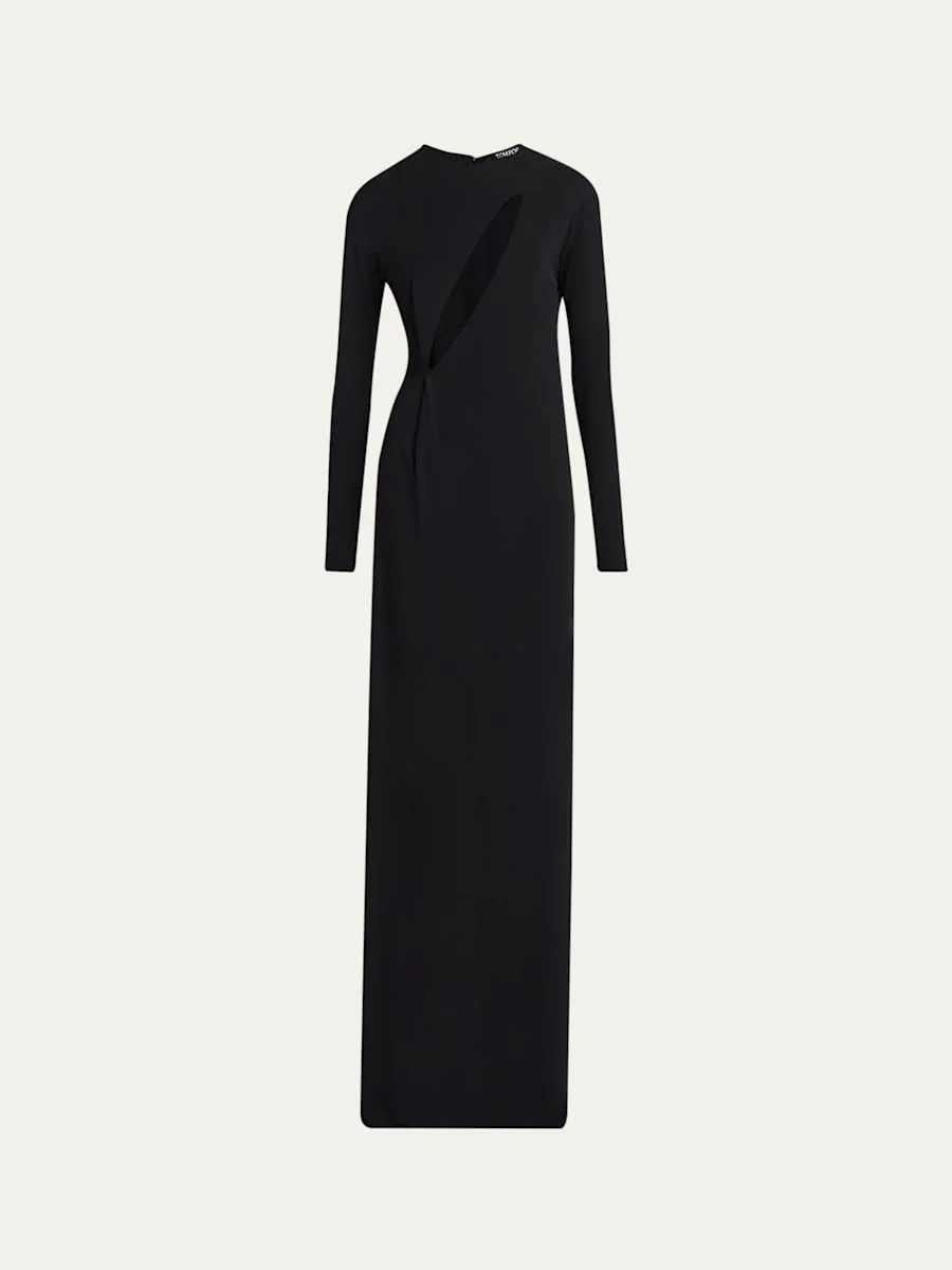 Slash Cutout Long-Sleeve Crepe Jersey Maxi Dress