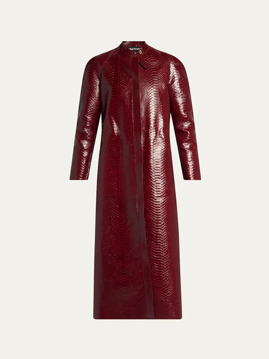 Snake-Embossed Leather Long Coat