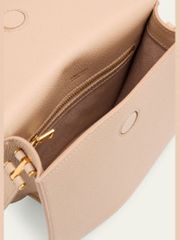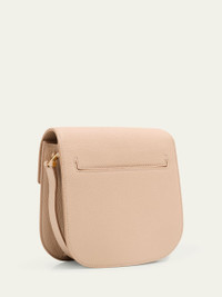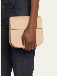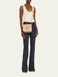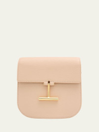 TOM FORD grained calf leather shoulder bag. Adjustable shoulder strap. Flap top with metal "T" bar closure. Inside, cotton lining; one zip pocket and one slip pocket. Exterior, slip pocket at back. Magnetic closure Approx. 7.8"W x 2.7"D x 7.2"H. Made in Italy