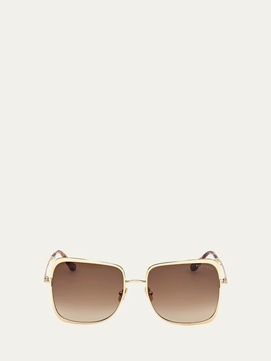 TOM FORD "Tara" square sunglasses feature goldtone metal frames capped with tortoiseeffect earpieces Eye/bridge/temple (in mm): 5717140 Gradient lenses Adjustable nose pads Thin, tapered arms 100% UVA/UVB protection Spot clean Made in Italy