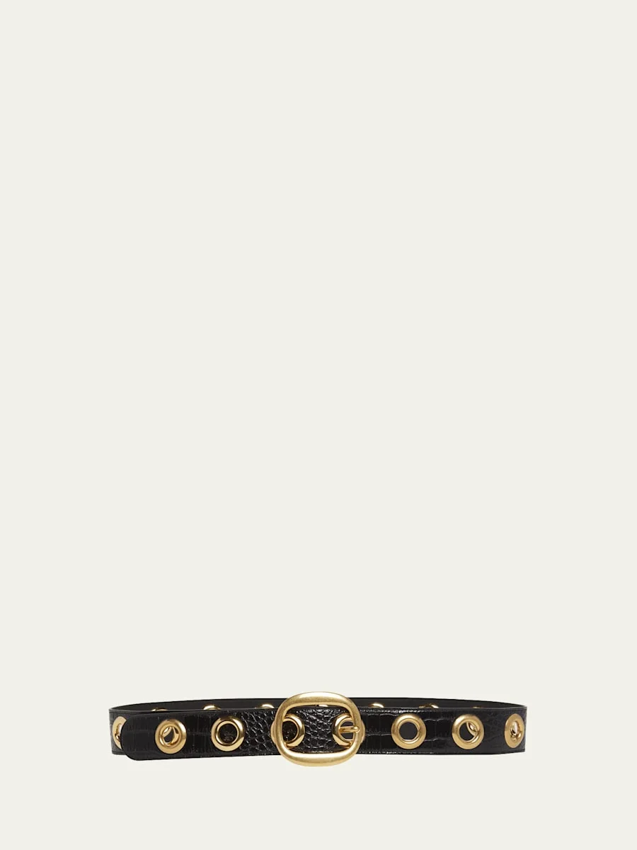 TOM FORD "Ursula" stamped croc-embossed leather belt Adjustable fit Buckle closure Item Weight (Lbs.): 0.2 Leather/leather Made in Italy Online Inquiries: BGS21_D53WR| Store Inquiries: #4948178