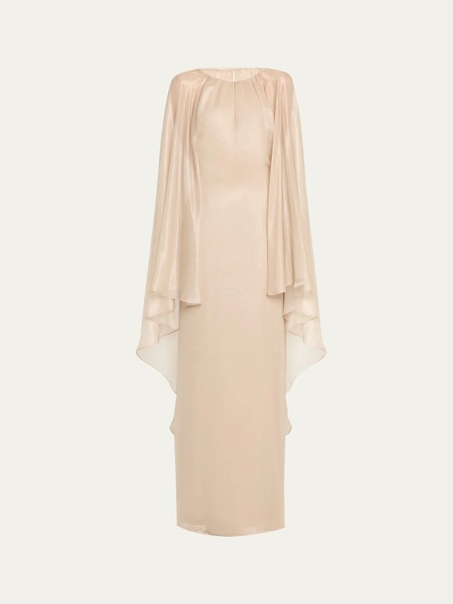 EVENING DRESS WITH KEYHOLE NECKLINE AND ASYMMETRIC CAPE