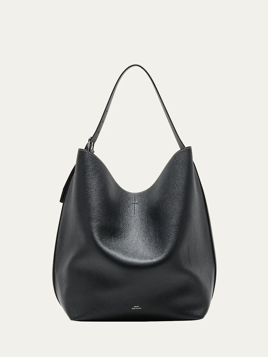 Toteme tote bag in light, soft and fluid leather Adjustable metal belt shoulder strap, 11.4" drop Open top with hook closure Interior, two slip pockets Resin-coated interior Lining: Polyurethane Approx. 14.5"H x 13.4"W x 10.6"D Made in Italy Online Inquiries: BGS21_V668E| Store Inquiries: #4747098