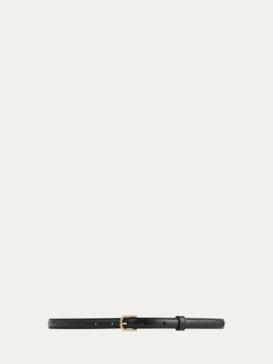 Toteme slim belt in responsibly sourced palmellatta leather Approx. 0.6"W Adjustable fit Goldtone metal buckle Cut to size Professional cleaning recommended Made in Italy