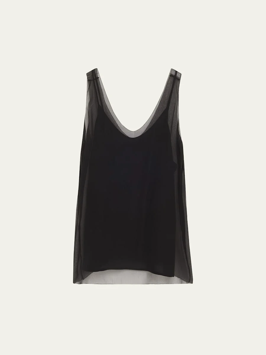 A longline cami silhouette, this slip top by Toteme is crafted from semi-sheer silk chiffon with fine picot trimming and a detachable inner slip for versatile styling Soft V neckline Sleeveless Relaxed fit Hip length Pullover style Silk Imported Online Inquiries: BGS21_T7SSY| Store Inquiries: #5199872
