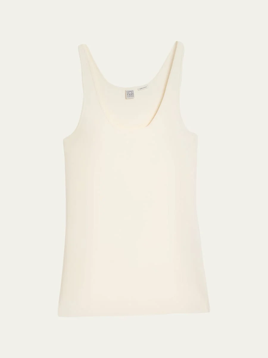 Toteme tank top is knitted from stretch, compact jersey with tubular side seams Scoop neckline Sleeveless Slim fit Hem slits Pullover style Viscose/nylon/polyamide/elastane Imported