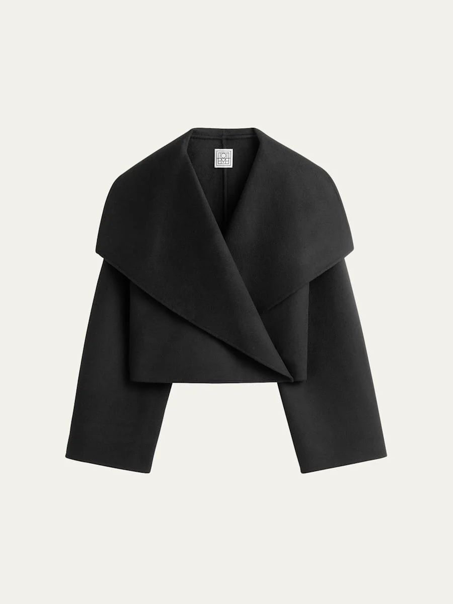 Toteme signature double-faced double wool jacket Shawl lapels; open front Long wide sleeves Cropped silhouette Side slip pockets Wool Dry clean Imported Online Inquiries: BGS21_B9PFF| Store Inquiries: #4935370