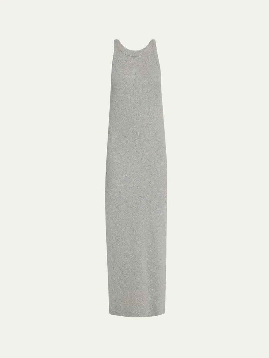 Toteme tank maxi dress in a curved ribbed knit finish Crew neckline Sleeveless Full length Column silhouette Organic cotton/elastane Made in Portugal Model is 5'10"/177cm. Online Inquiries: BGS21_B9CJ2| Store Inquiries: #4836490