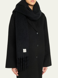 Toteme scarf crafted from a fuzzy alpaca blend with a soft, brushed finish and long tassels. Approx. 86.6"L x 19"W May be styled multiple ways Alpaca/wool/polyester Hand wash Made in Italy