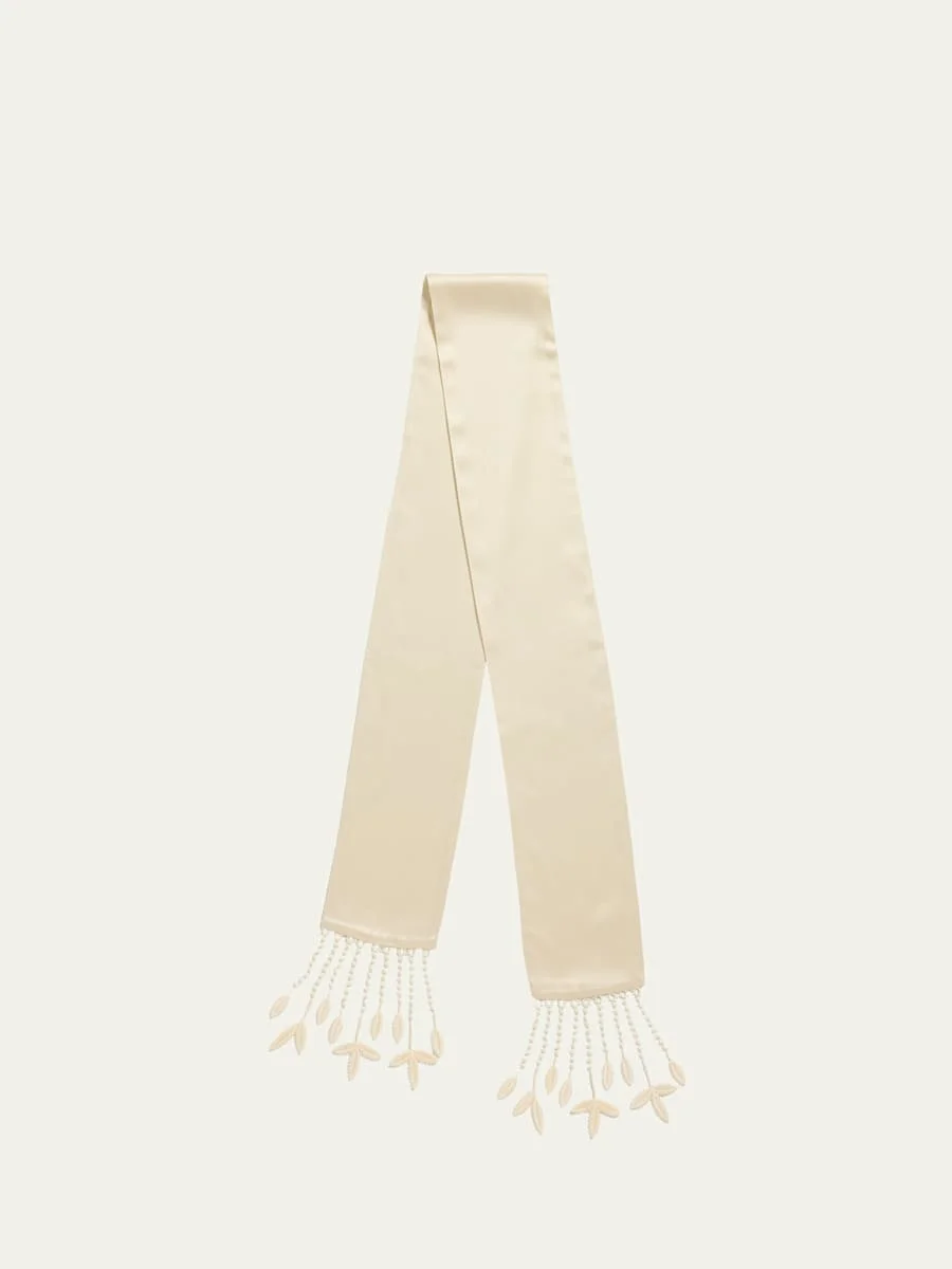 Crafted from fluid crepe, this Toteme tuxedo scarf showcases guipure lace fringing on both ends. Approx. 59"L x 5"W May be styled multiple ways Viscose Dry clean Imported
