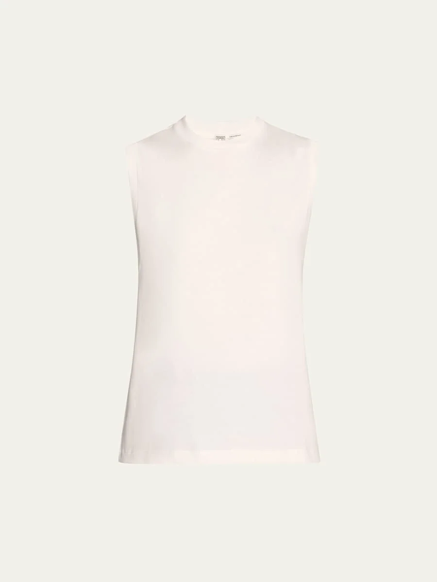 Toteme classic jersey tee High crew neckline Sleeveless Relaxed fit Pullover style Organic cotton Made in Portugal Model is 5'10"/177cm. Online Inquiries: BGS21_B9CSB| Store Inquiries: #4840232
