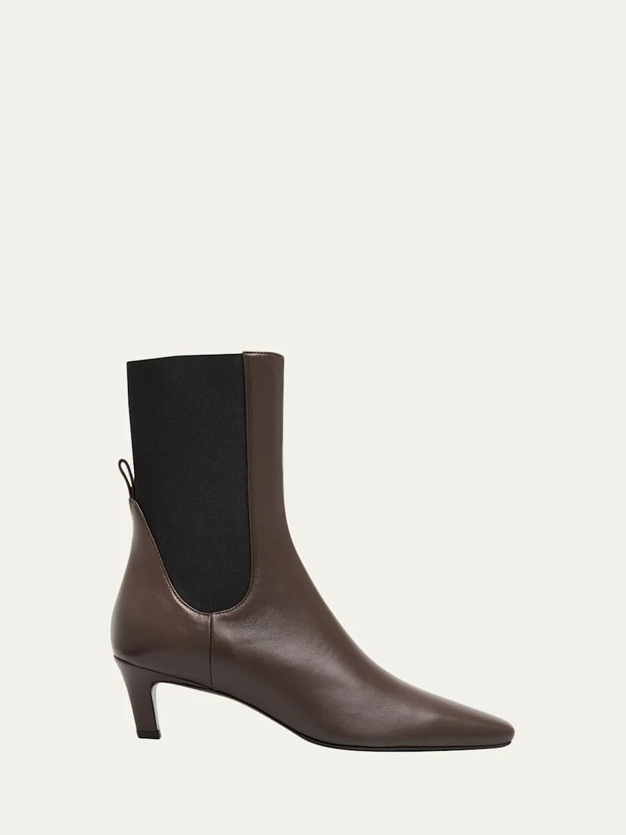 Leather Mid-Heel Ankle Boots