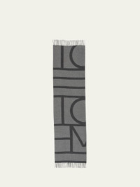Toteme tonal monogram jacquard scarf in wool Reverses to negative motif Approx. 86.6"L Fringe trim May be styled in multiple ways Dry clean Made in Italy Online Inquiries: BGS21_D4RU2| Store Inquiries: #4650992