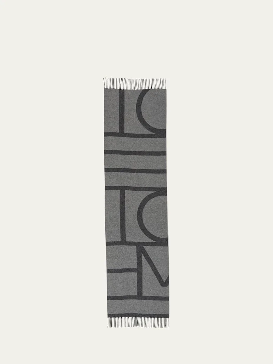Monogram jacquard wool scarf dark grey mélange
