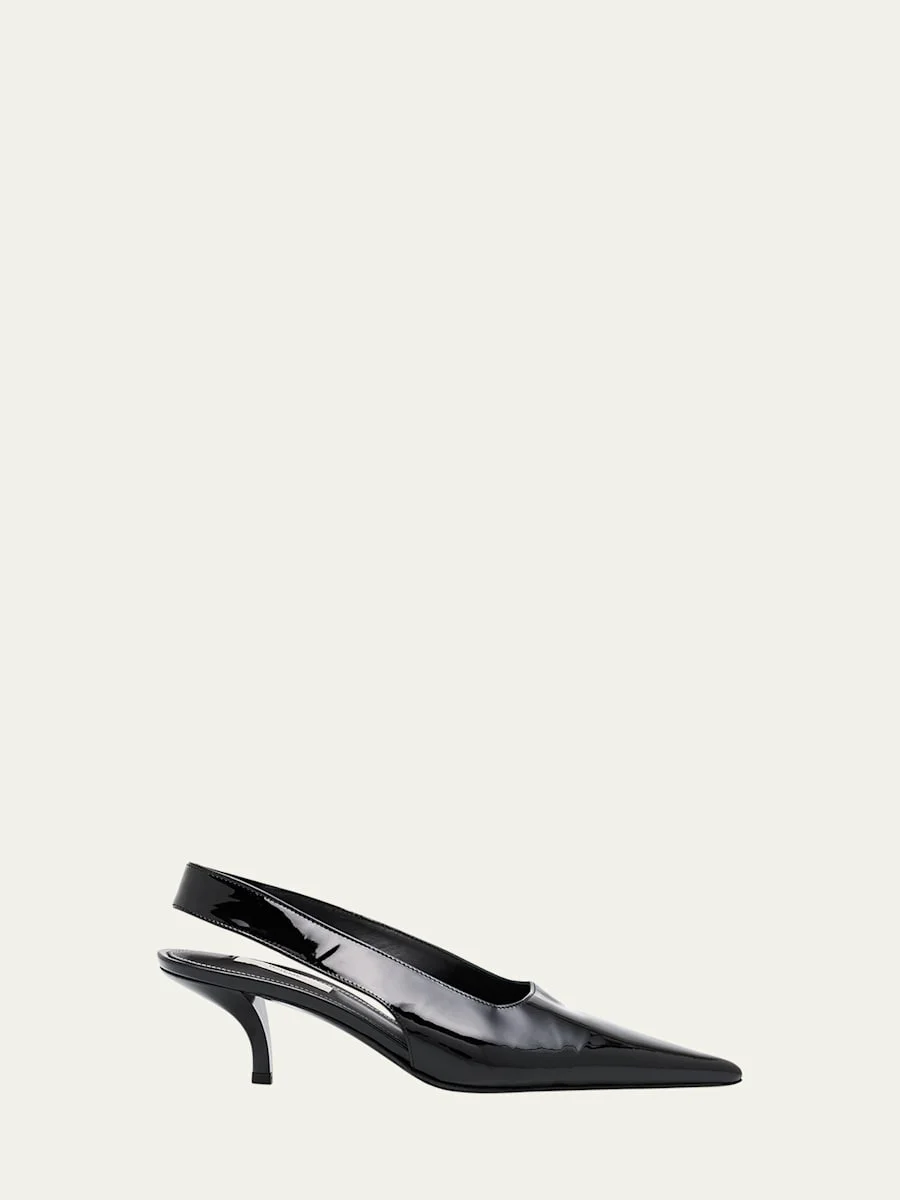 A modern interpretation of classic pumps, these slingbacks by Toteme are crafted from shiny patent leather and feature bold straps and a contoured heel 1.38 in / 35 mm kitten heel Pointed toe Slingback strap Leather lining and outsole Made in Italy